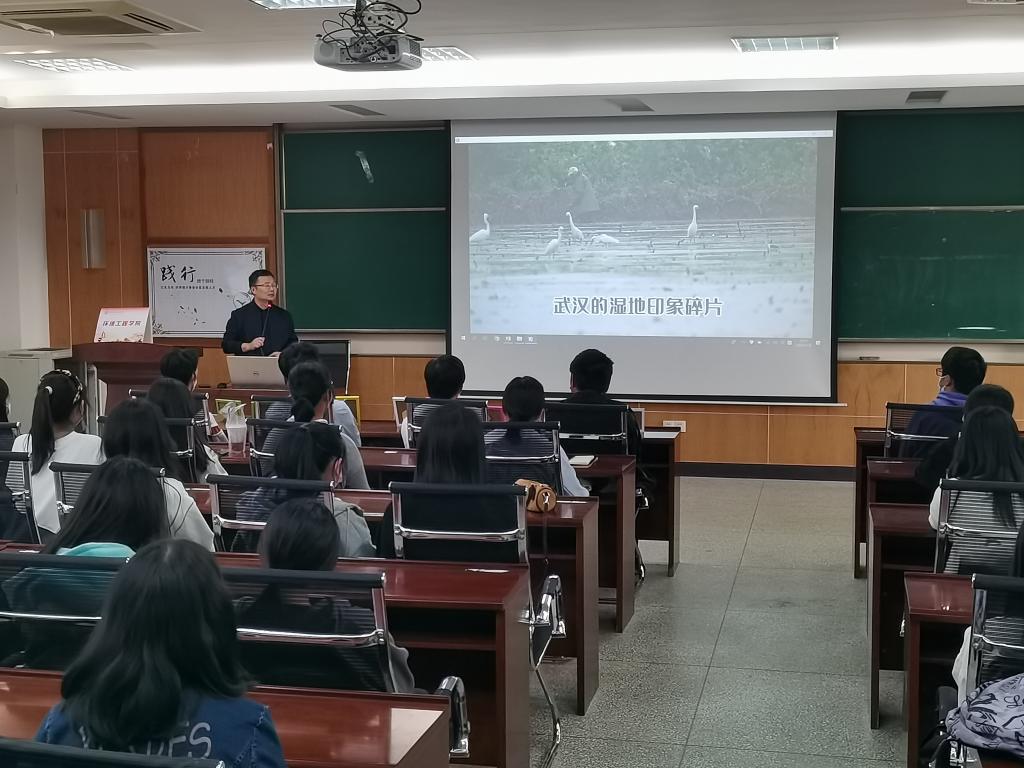 “落霞与孤鹜齐飞,秋水共长天一色”,武汉市东湖国家湿地公园、藏龙岛国家湿地公园等湿地景色美不胜收,为在座的同学带来了一次次视听盛宴。