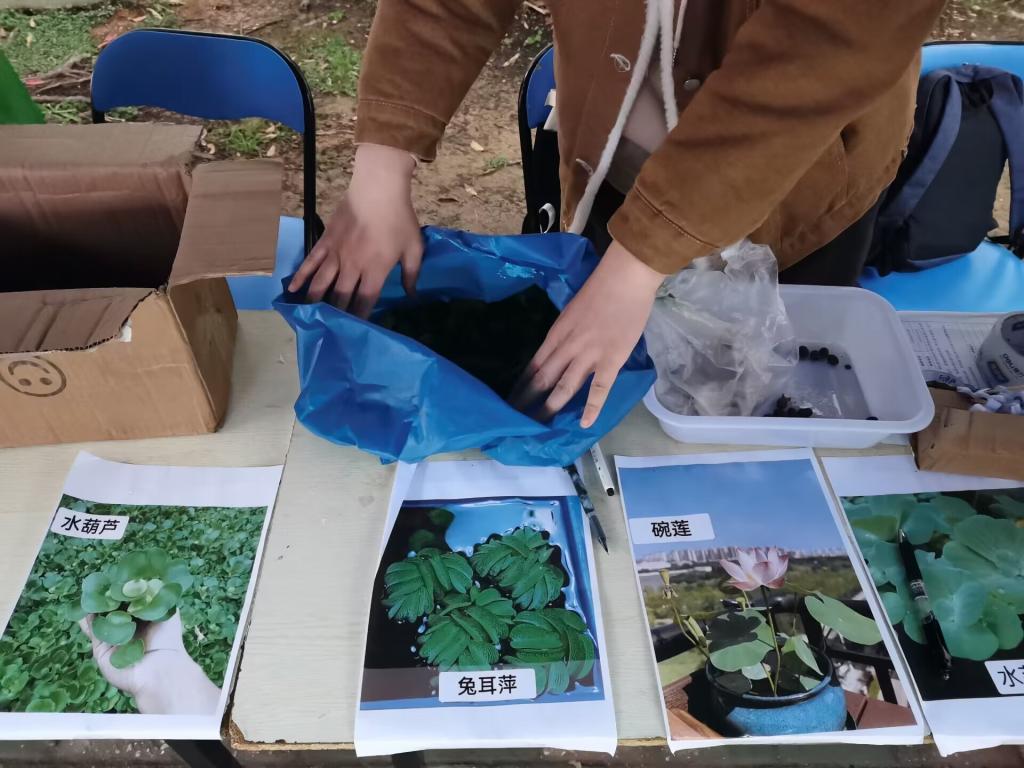 认养一棵苗,传递一份爱,志愿者们选取微型湿地植物,例如:挺水型植物(如菖蒲等)、浮叶型植物(如碗莲等)、漂浮型植物(如浮萍等)、沉水型植物(如金鱼藻等),借助绿植实体生动形象的向参与活动的同学们科普湿地在净化水质、孕育生命等方面的作用,鼓励同学们领养湿地植物,成为“绿植守护者”。助力“美丽中国,青春行动”的建设。