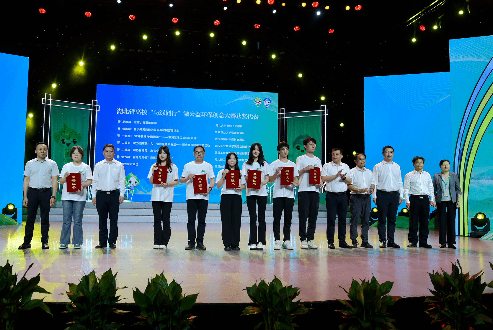 活动中,相关领导为第七届湖北省高校“与绿同行”微公益环保创意大赛、全国中学生水科技发明比赛获奖代表、湖北省青少年环保使者以及第七届湖北省环境保护政府奖获奖代表颁奖。