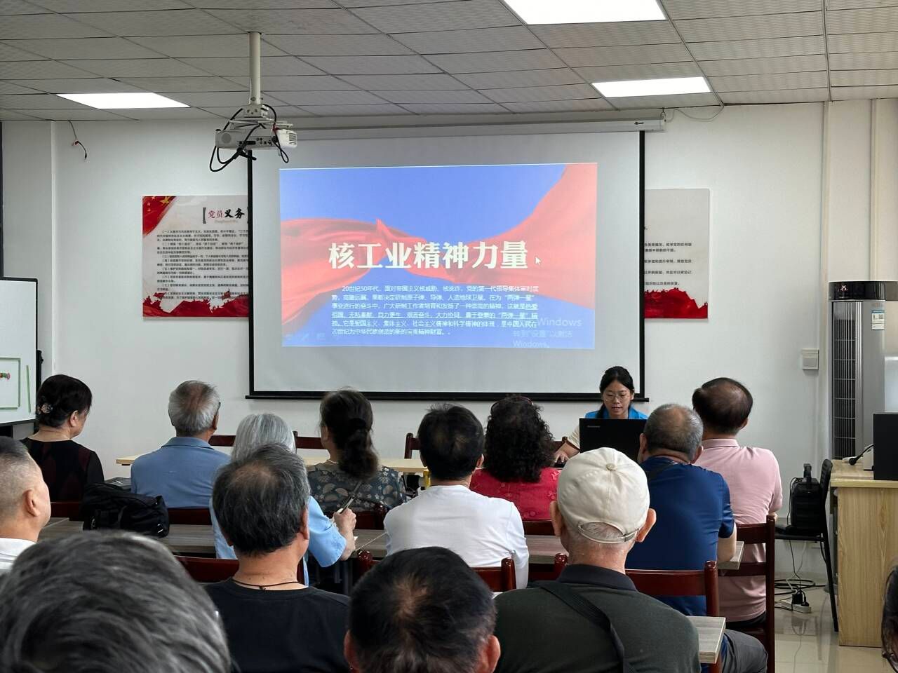 7月4日,宣讲团来到武汉市狮南社区与社区党员共同学习党章、进行“两弹一星”精神宣讲。从铭记卓越历史功绩、铭记功勋英雄群体、铭记伟大时代精神三个方面深入阐述了伟大的“两弹一星”精神,重温了钱学森、邓稼先、林俊德一个个可歌可敬的“两弹一星”功勋故事,生动解析了“热爱祖国、无私奉献,自力更生、艰苦奋斗,大力协同、勇于登攀”的“两弹一星”精神的深刻内涵和精神实质。