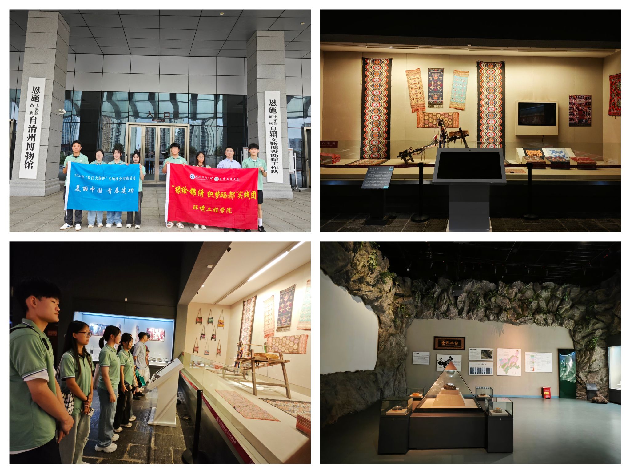 7月31日,实践团来到了恩施州博物馆,队员们参观《武陵足音》《恩施记忆》和《生态恩施》三大专栏,深入了解了巴族历史的辉煌和土家文化的灿烂,近代以来恩施优秀儿女为争取国家独立、实现民族复兴英勇奋斗、不怕牺牲的光辉业绩和瑰丽雄奇的自然风光,纷繁多样的地质地貌,奇特多姿的自然生态,丰富多彩的物种矿藏。在“西兰卡普”专栏,通过解说,实践团成员对“西兰卡普”的历史发展有了更加深刻地了解。