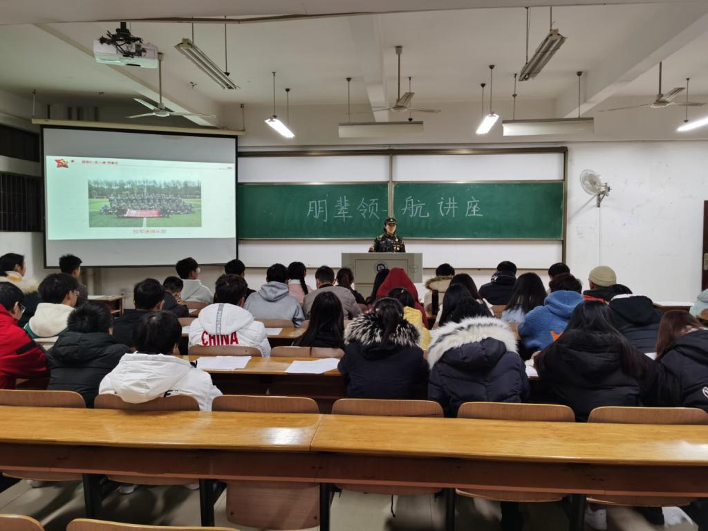 为培养青年学子爱国情怀,鼓励积极投身绿色军营,12月13日晚,崇礼楼110教室座无虚席,学院退伍学生肖洁丽以《爱国心 军人魂 青春志》为题,举行朋辈领航讲座。